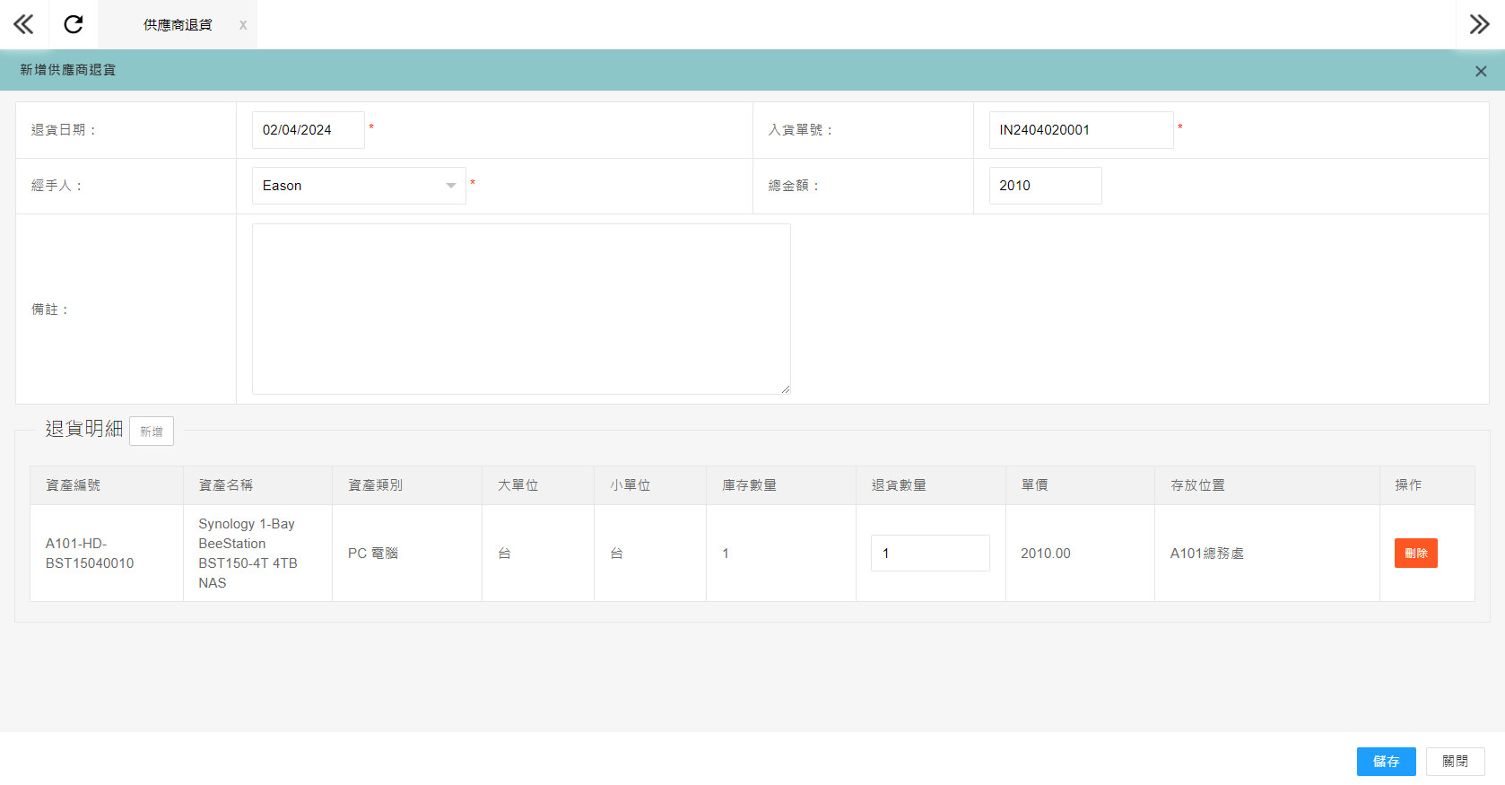 輸入物品資料 - 系統生成物品編碼 - 列印標籤 - 將標籤貼上物品上 - 掃瞄一次物品以確認物品入庫位置